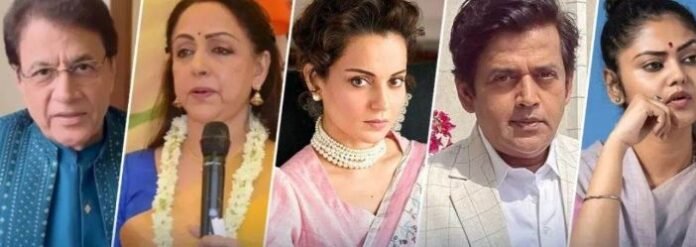 बॉलीवुड में ऐसे कई सितारें हैं, जो राजनीति की दुनिया में कदम रख चुके हैं। फिल्म इंडस्ट्री और राजनीति का पुराना नाता रहा है। राजनीति में उतरने के बाद उन सितारों को लोगों का काफी प्यार मिला है, लेकिन कुछ स्टार्स ये जिम्मेदारी संभाल नहीं पाए और उन्होंने राजनीति से इस्तीफा दे दिया। अब साल 2024 में लोकसभा चुनाव होने जा रहे हैं। इसी के साथ कई सितारें हैं, जो राजनीति में उतरने वाले हैं। कंगना रनोट, अरुण गोविल, हेमा मालिनी समेत कई सितारे अलग-अलग क्षेत्रों से लोकसभा चुनाव लड़ने वाले हैं। फिल्मी पर्दे पर देखने के बाद अब ये देखना दिलचस्प होगा कि बतौर लीडर जनता इन्हें अपनाती है या नहीं। आइए, जानते हैं कि वे सितारे कौन-से हैं, जो इस बार चुनावी मैदान में नजर आएंगे।