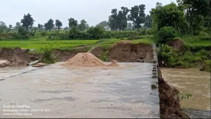 रमपुरी से सिहोरा पहुंच मार्ग पर बना पुल दो वर्ष पूर्व क्षतिग्रस्त हो चुका है जिसका अब तक किसी तरह का कोई भी मरम्मत कार्य नहीं हो पाया है। जिसकी वजह से लोग पोड़ी से रामपुरी पहुंच मार्ग का उपयोग आवागमन में करते है और इस मार्ग से ग्रामीणजन कम समय में लालबर्रा मुख्यालय पहुंच जाते है। लेकिन यह मार्ग की मिट्टी कटाव होने से यह सडक़ जानलेवा बन चुकी है जिससे कभी भी बड़ी दुर्घटना घटित हो सकती है और यह मार्ग पूरी तरह से बंद हो सकता है। जबकि इस संबंध में गत माह पूर्व बालाघाट एक्सप्रेस अखबार में समाचार प्रकाशन कर प्रशासन को चेताया गया था उसके बाद भी प्रशासन धृष्ट राज बना रहा और खबर प्रशासन के बाद भी तत्काल किसी तरह का कोई भी मरम्मत या सुधार कार्य नहीं किया गया। यही कारण है कि वर्तमान में यह स्थिति निर्मित हुई है जिसका खामिया ग्रामीणजन व राहगीरों को भुगतना पड़ेगा।
