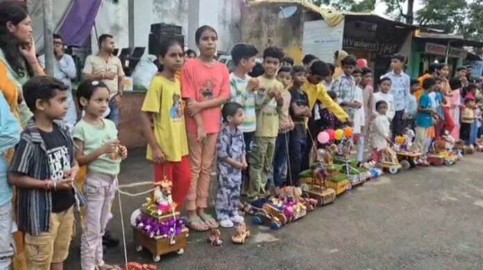 नगर के विभिन्न स्थानों से नन्हे मुन्ने बच्चे गांधी चौक में एकत्रित हुए जहां पर नगर वासियों के द्वारा बच्चे एवं उनके नंदी को तिलक लगाकर भेंट स्वरूप चॉकलेट, कुरकुरे, पेन पेंसिल, गमछा, टोपी व अन्य चीजों का वितरण किया गया। इस दौरान बड़ी संख्या में नगर वासियों ने उपस्थिति दर्ज करवा कर कार्यक्रम को सफ ल बनाया और उक्त कार्यक्रम का जमकर आनंद लिया। बच्चो द्वारा तरह तरह के वेशभूषा में अपने नंदी देव को सजा कर वह अन्य साज सज्जा कर लेकर उपस्थित हुये। जिसके बाद सामूहिक राष्ट्रगान कर तोरण तोडकर कार्यक्रम का समापन किया गया।