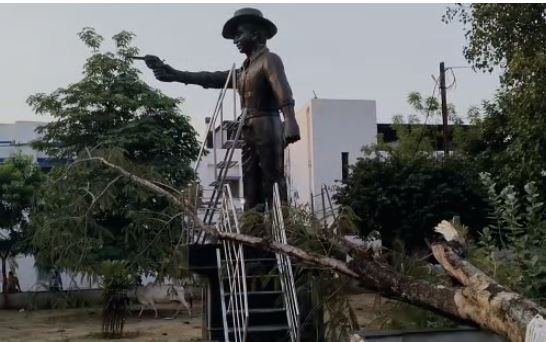 बालाघाट शहीद भगत सिंह शासकीय जिला अस्पताल परिसर के शहीद गार्डन में स्थापित शहीद भगत सिंह की प्रतिमा के ऊपर पेड़ धराशाई हो गया किंतु शहीद भगत सिंह की इस प्रतिमा को खरोच तक नहीं आई किंतु चारों तरफ लगी स्टील की रेलिंग टूट गई। पिछले 10,12 दिनों से जिला अस्पताल परिसर में स्थित शहीद गार्डन के पास लगे गुलमोहर का झाड़ झुकते जा रहा था और वहां से आने जाने वालों पर रोक लगाने के लिए रस्सी बांधी गई थी अस्पताल प्रबंधन द्वारा पेड़ को काटे जाने के संबंध में नगर पालिका को सूचित किया गया किंतु नगर पालिका के द्वारा इस और ध्यान नहीं दिया गया और पेड़ धराशाई हो गया