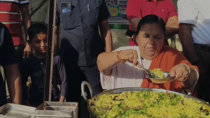 टीकमगढ़ में बुलडोजर कार्रवाई के विरोध में उमा भारती सड़क पर उतरीं, पोहा-जलेबी बेचकर गरीबों के हक की उठाई आवाज