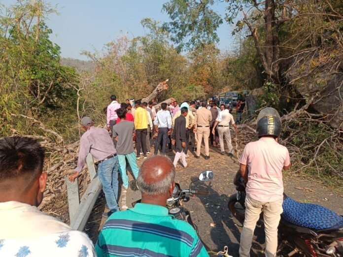 शुक्रवार की शाम बैहर रोड में उस वक्त बड़ा हादसा टल गया जब सड़क किनारे लगा एक पेड़ अचानक से बैहर मार्ग पर धराशाही हो गया। जहां इस हादसे में उक्त मार्ग से आवागमन कर रहे लोगों की जान बाल बाल बच गई ,तो वहीं करीब 2 घंटे तक यातायात प्रभावित रहा। घटना शुक्रवार की शाम करीब 6 बजे की बताई जा रही है।प्राप्त जानकारी के अनुसार बैहर रोड स्थित बंजारी और मलाजखंड के बीच गोलाई के समीप किन्हीं अज्ञात लोगों द्वारा सड़क किनारे लगे एक बड़े से पेड़ के नीचे आग लगाकर उस पेड़ को अत्यधिक मात्रा में जला दिया था। जहां पेड़ अत्यधिक मात्रा में जल जाने के कारण शुक्रवार की शाम अचानक से धराशाही हो गया ।जिसके चलते उक्त मार्ग से आवागमन कर रहे लोग बाल बाल बच गए तो वहीं सड़क के बीचों-बीच विशालकाय पेड़ गिर जाने से सड़क के दोनों ओर का आवागमन पूर्ण रूप से बाधित हो गया। जहां सड़क के दोनों ओर करीब 2 घंटे तक लंबा जाम बना रहा।जिसकी सूचना स्थानीय राहगीरों द्वारा फॉरेस्ट कर्मचारियों को दी गई जहां फॉरेस्ट कर्मचारियों ने मौके पर पहुंचकर उक्त पेड़ को हटाकर यातायात व्यवस्था सुचारू बनाने की काफी कोशिश की, लेकिन वे कामयाब नहीं हो सके। इसी बीच उक्त मार्ग से कुल्हाड़ी लेकर गुजर रहे दो लोगों से कुल्हाड़ी मांग कर वन विभाग के कर्मचारियों ने पेड़ की कटाई शुरू की और करीब 2 घंटे की कड़ी मशक्कत के बाद उक्त मार्ग से पेड़ को काटकर हटाया गया और यातायात व्यवस्था सुचारू हो गई। इस पूरे मामले में राहगीरों ने वन विभाग पर अपनी नाराजगी व्यक्ति की है तो वही अज्ञात तत्वों द्वारा पेड़ जलाने की घटना को अंजाम देने पर भी वन विभाग को इसकी सूचना तक नहीं मिली जिसको लेकर वन विभाग की कार्य प्रणाली पर भी सवाल खड़े किए हैं।