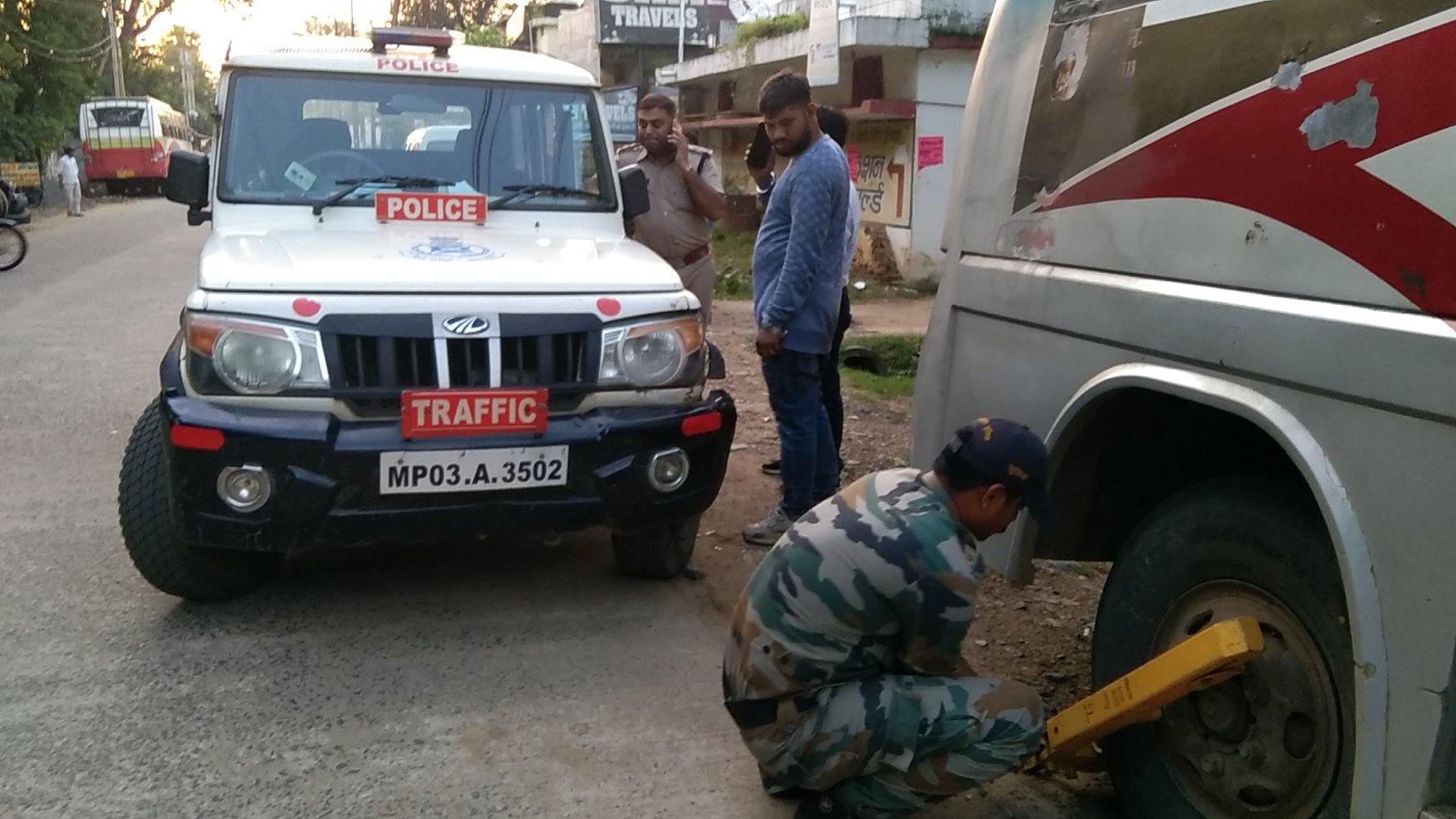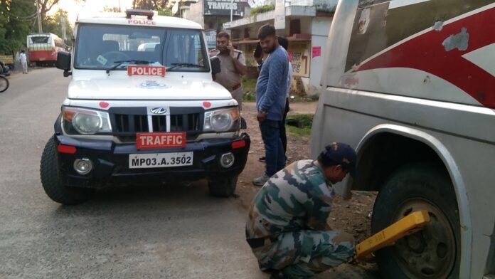 यातायात विभाग के अमले को निर्देश मिलने पर यातायात विभाग के थाना प्रभारी शैलेंद्र यादव अपने अमले के साथ मंगलवार की शाम को बूढ़ी रोड में पहुंचे और वहां का निरीक्षण कर रोड में खड़ी बसों पर तत्काल ही कार्यवाही शुरू की।