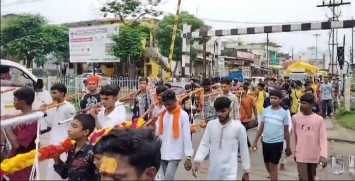बालाघाट(पदमेश न्यूज)।सावन के महीने में भगवान शिव की विशेष पूजा-अर्चना करने का अलग ही महत्व है। जिसके चलते पूरे महीने शिव मंदिरों में भक्तों की भीड़ रहती है।खासकर सावन के पवित्र महीने में पड़ने वाले सोमवार के मौके पर शिवालयों में खासी भीड़ उमड़ती है।शास्त्रों के अनुसार, इस माह भगवान भोलेनाथ की विशेष पूजा अर्चना करने से भगवान शिव प्रसन्न होते है।और भक्तो की मनमुराद पूरी करते है।शायद यही वजह है इस माह में कांवड़ियों द्वारा जलाशयों से पानी कावड़ में ले जाकर भगवान भोलेनाथ का जलाभिषेक कर विशेष प्रथाएं की जाती है।जिसका एक नजारा आए दिनों की तरह रविवार को भी नगर में देखने को मिला। जहां पिछले कई वर्षों से चली आ रही परंपरा को निभाते हुए हर साल की तरह इस साल भी नगर के वार्ड नं 7 गौरी देव मन्दिर से विशाल कावड़ यात्रा निकाली गई।नगर से लांजी कोटेश्वर धाम के लिए निकाली गई यह कावड़ यात्रा नगर के विभिन्न मार्गों का भ्रमण करते हुए लांजी कोटेश्वर धाम के लिए रवाना हुई।इस कावड़ यात्रा में श्रद्धालुओं का भारी हुजूम देखने को मिला और कावड़िए झूमते नाचते गाते हुए इस यात्रा में शामिल हुए।बताया गया कि सोमवार को लांजी कोटेश्वर धाम पहुंचकर श्रद्धालु भक्तो द्वारा कावड़ का जल भगवान भोलेनाथ को अर्पित किया जाएगा। वही द्वारा पंडितों की मौजूदगी में शिव महाभिषेक, महामृत्युंजय के जाप, और रुद्राभिषेक किया जाएगा। वही पंडितों के द्वारा शिव महापुराण पाठ कराकर रात्रि में भगवान भोले की भक्ति में जगराता किया गया जाएगा।