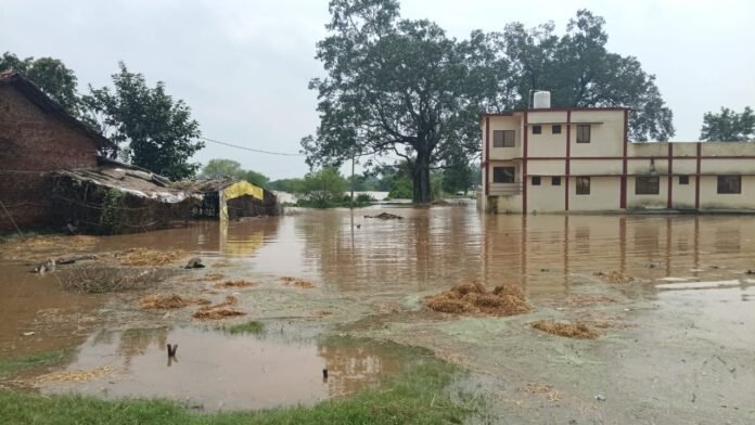 ग्राम घोटी के ढीमरटोला में घुसा बाढ़ का पानी