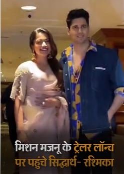 सिद्धार्थ मल्होत्रा और रश्मिका मंदाना की फिल्म मिशन मजनू का ट्रेलर हाल ही में रिलीज हुआ है। इस बीच दोनों फिल्म के ट्रेलर लॉन्च पर पहुंचे जिसका एक वीडियो सामने आया है। इस वीडियो में दोनों एक साथ स्पॉट हुए। इवेंट के दौरान रश्मिका पिंक साड़ी में नजर आईं, जिसमें वह बेहद खूबसूरत लग रही हैं। वही, सिद्धार्थ भी प्रिंटेड ब्लू शर्ट के साथ ब्लू जैकेट में बेहद हैंडसम दिख रहे हैं। फैंस को दोनों की केमिस्ट्री खूब पसंद आ रही है।