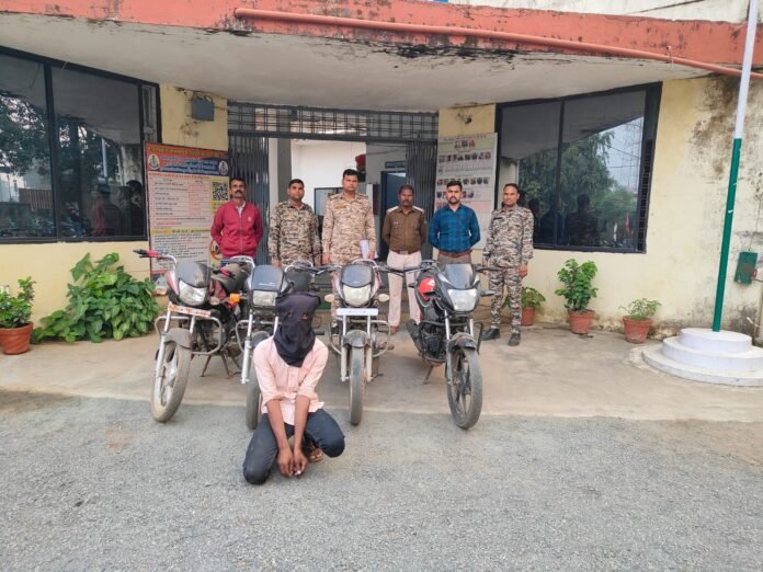 लांजी(पदमेश न्यूज़)।लांजी पुलिस ने मोटर सायकिल चोरी के आरोप में एक युवक को गिरफ्तार कर उसके पास से 2 लाख 40 हजार रु की मोटरसाइकिल बरामद की।पुलिस की गिरफ्त में आए आरोपी का नाम थाना लांजी ग्राम परसोड़ी निवासी 20 वर्षीय विरेन्द्र पिता धन्नुलाल नगपुरे बताया गया है।जिसपर विभिन्न धाराओं के तहत मामला पंजीबद्ध कर पुलिस द्वारा इस पूरे मामले की जांच शुरू कर दी गई है।पुलिस ने देरशाम मोटर सायकिल चोरी के आरोपी के बारे में जानकारी मीडिया से साझा की। लांजी थाना प्रभारी निरीक्षक दिनेश सोलंकी ने बताया कि वरिष्ठ अधिकारियों के मार्गदर्शन और निर्देशन में बिना नंबर वाहनों की जांच के दौरान, एक युवक बिना नंबर की मोटर साईकिल से, पुलिस को देखकर भागने लगा। जिसे देखकर पुलिस ने उसका पीछा किया और घेराबंदी कर उसे पुलिस अभिरक्षा में लेकर पूछताछ की तो पता चला कि उसके पास वाहन के दस्तावेज नहीं है और वह चोरी का वाहन चला रहा था। जिससे और पूछताछ में आरोपी युवक विरेन्द्र ने चार मोटर सायकिल चोरी की बात कबूल की। जिसके बाद पुलिस ने उसकी निशानदेही पर चोरी की चार मोटर सायकिल बरामद की है। जिसकी अनुमानित कीमत लगभग 2 लाख 40 हजार रूपए है। जिसके खिलाफ पुलिस थाना में 35(1)क, 106 बीएन