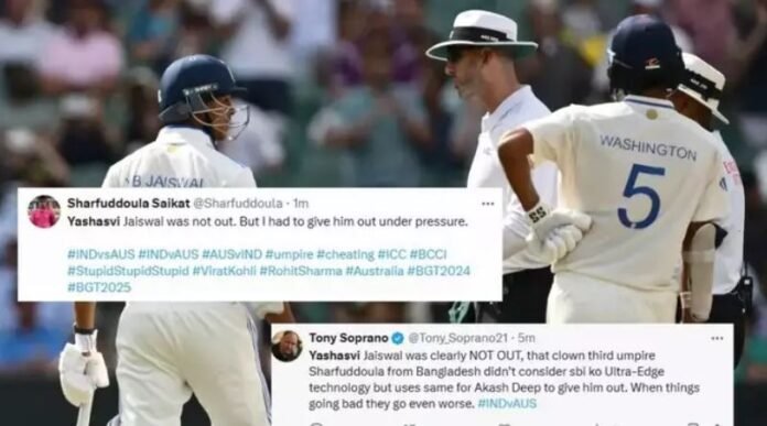 एक फैंस ने लिखा, ‘ऑस्ट्रेलिया का धोखा देने का तो पुराना इतिहास रहा है जब वे खेलकर नहीं जीत सकते तो बेईमानी करते हैं। यशस्वी जयसवाल स्पष्ट रूप से नॉट आउट थे लेकिन तीसरे अंपायर ने धोखा दिया और उन्हें आउट करार दिया जबकि अल्ट्रा एज ने स्पष्ट रूप से उन्हें नॉट आउट दिखाया।’