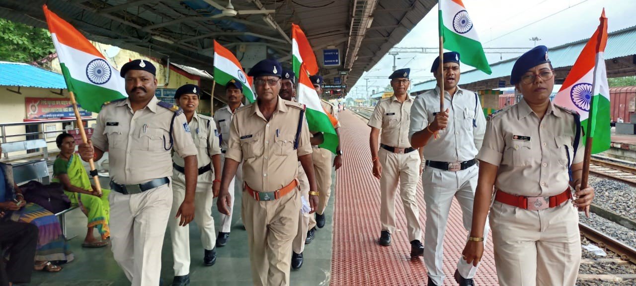 आजादी के अमृत महोत्सव के अवसर पर रेलवे स्टेशन परिसर में आरपीएफ और जीआरपी पुलिस के अमले द्वारा शनिवार की दोपहर में फ्लैग मार्च किया गया और इसके जरिए जिले की जनता को देशभक्ति के जज्बे के साथ आजादी का अमृत महोत्सव मनाए जाने का संदेश दिया गया। इस फ्लैग मार्च के संबंध में जानकारी देते हुए आरपीएफ के प्रधान आरक्षक राकेश गड़पाल ने बताया कि वरिष्ठ अधिकारियों के निर्देशन में आजादी के अमृत महोत्सव के अवसर पर यह फ्लैग मार्च निकाला गया है ताकि जनता अच्छे से निर्भीक होकर आजादी का अमृत महोत्सव मनाए।