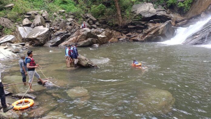 आपको बता दें कि युवक अमन पिता शिवकुमार सोनवाने उम्र 22 वर्ष बुद्ध विहार के पास ग्राम कुसमी का रहने वाला था जो कि 30 जुलाई को दोपहर में अपने दोस्तों के साथ गांगुलपरा जलाशय के समीप सात नारी झरने में नहाने गया हां सेल्फी लेने के दौरान झरने के अधिक पानी में जाने से युवक की डूबने की जानकारी उसके दोस्तों द्वारा पुलिस को दी थी उसके बाद से ही युवक को झरने में तलाशा की जा रहा था किंतु युवक का नाही 30 जुलाई को पता चला और ना ही 31 जुलाई को एसडीआरएफ की टीम के द्वारा दिनभर सर्चिंग करने के बावजूद भी कोई पता नहीं चला है वही 31 जुलाई को चलाए गए इस रेस्क्यू ऑपरेशन में भरवेली पुलिस थाना प्रभारी सहित पुलिस के आला अधिकारी एवं युवक के परिजन घटनास्थल पर मौजूद रहे वहीं कंट्रोल रूम से सूचना देने पर एसडीआरएफ का बल गंगुलपारा के सतनारी झरना में एक युवक के पानी में डूबने की सूचना मिलने पर डिस्ट्रिक्ट कमांडेंट बालाघाट के मार्गदर्शन में होमगार्ड/SDERF की टीम घटना स्थल के लिए रवाना किया गया जो प्रातः 6 बजे से रेस्क्यू किया गया पर शांम तक सफलता हाथ नही लगी इस टीम में टीम प्रभारी श्री श्यामसिंह धुर्वे प्लाटून कमांडर,सह,उप,नि श्री महेश कुमार उइके नायक , रामचरण सिरसागर, दिलशाद,बलराम कुशराम,कुलदीप दुबे, घनस्याम सोनेकर,करण सिंह वल्के, आशु मेश्राम,महेन्द्र सिंह राठौर,पंकज दास वाहन चालक नदीम खान उपस्थित रहे।
