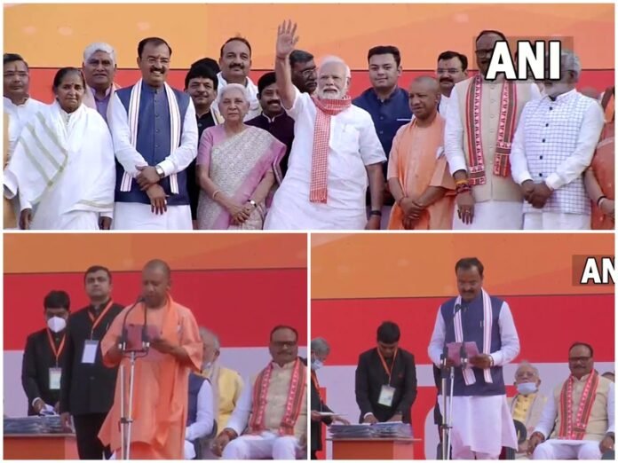 आपको बता दें कि योगी आदित्यनाथ सरकार में पिछली बार यानी 19 मार्च, 2017 को 47 मंत्रियों ने शपथ ली थी। संवैधानिक प्रावधानों के अनुसार उत्तर प्रदेश में मुख्यमंत्री सहित कुल 60 मंत्री हो सकते हैं। योगी आदित्यनाथ सरकार के दूसरे कार्यकाल में डा. महेन्द्र सिंह, सतीश महाना, आशुतोष टंडन गोपाल जी, सिद्धार्थ नाथ सिंह, नीलकंठ तिवारी तथा जय प्रताप सिंह मंत्री नहीं बन रहे हैं। मंत्रिमंडल से मोहसिन रजा का पत्ता कटा, मोहसिन की जगह दानिश आजाद को मौका मिलेगा। डा. दिनेश शर्मा को विधान परिषद का सभापति बनाया जा सकता है, जबकि सतीश महाना विधानसभा अध्यक्ष हो सकते हैं।इस समारोह में हिस्सा लेने के लिए तमाम राज्यों के मुख्यमंत्रियों के अलावा पीएम मोदी, गृहमंत्री अमित शाह और रक्षा मंत्री राजनाथ सिंह भी भारत रत्न अटल बिहारी वाजपेयी इकाना स्टेडियम में मौजूद थे।
