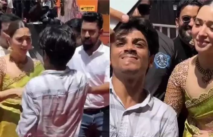 सोशल मीडिया पर Tamannaah Bhatia भाटिया का वीडियो सामने आया है। जहां एक फैन उनसे मिलने के लिए सुरक्षा के बैरिकेड्स को फांदते हुए एक्ट्रेस के करीब पहुंच गया। फैन ने एक्ट्रेस का हाथ भी पकड़ा और सेल्फी के लिए रिक्वेस्ट करने लगा।