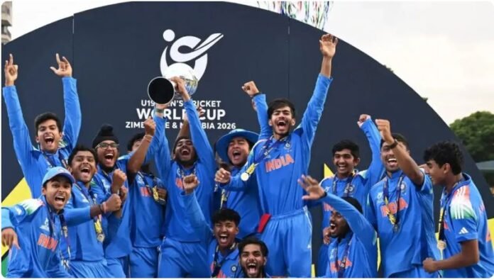 - BCCI announces prize money for India U19 Team: बीसीसीआई ने भारत की अंडर-19 क्रिकेट टीम को 2026 अंडर-19 विश्व कप जीतने पर 7.5 करोड़ रुपये के इनाम की घोषणा की, जिसमें उन्होंने शुक्रवार को फाइनल में इंग्लैंड को हराया। बीसीसीआई सचिव देवजीत सैकिया ने भारत की अंडर-19 टीम को 2026 अंडर-19 विश्व कप जीतने, अपराजित रहने और फाइनल में इंग्लैंड को हराने पर गर्व व्यक्त किया। उन्होंने घोषणा की कि बीसीसीआई टीम को 7.5 करोड़ रुपये का नकद पुरस्कार देगा।